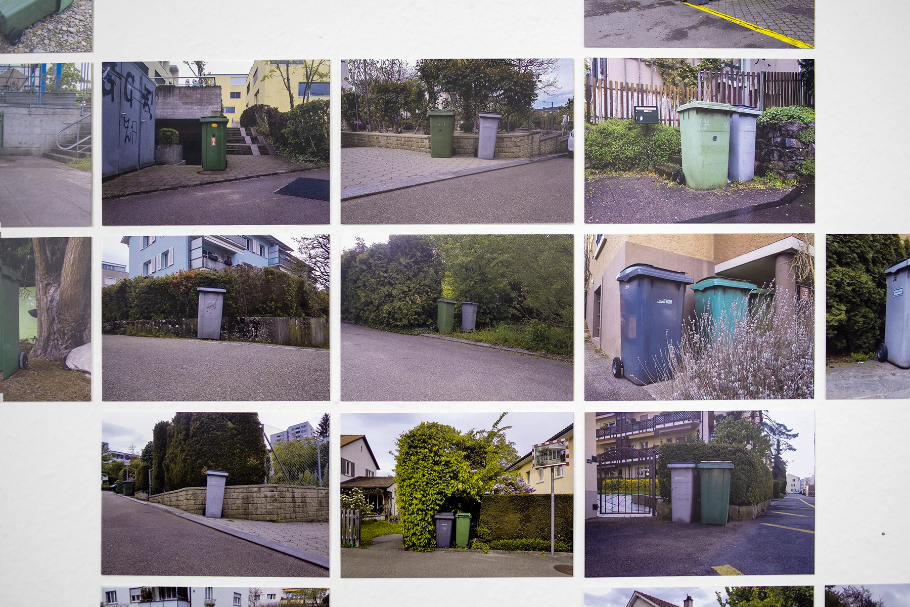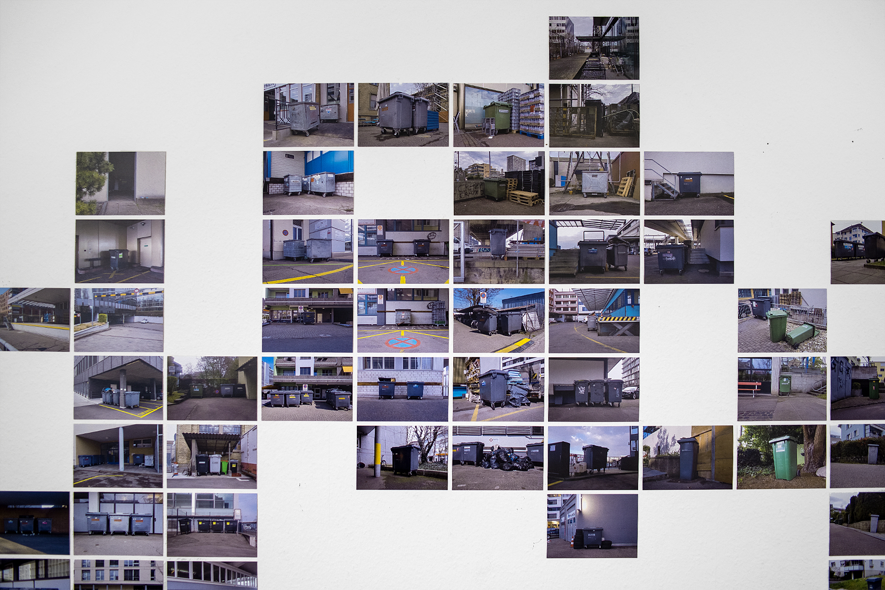 Das Ausmass der Fülle an Züri-Sack-Container in Zürich fällt erst auf, wenn mensch nach ihnen Ausschau hält – ein Beispiel des selektiven Blicks im Alltag. Mit den Containern geht eine architektonische oder räumliche Rahmung einher: die Einhausung. Bei den Einhausungen und den Standorten der Container treffen zwei Sets von Normierungen aufeinander: einerseits der Container und seine Handhabung, andererseits die sonstige gebaute Umwelt. Die Form von Postkarten thematisiert die (nicht-) Vermarktung von urbanen Qualitäten.