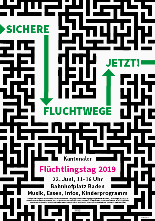 – Plakat & Flyer Flüchtlingstag Aargau Auftrag: Organisationskommitee Flüchtlingstag Aargau 2019 – Plakat F4 –