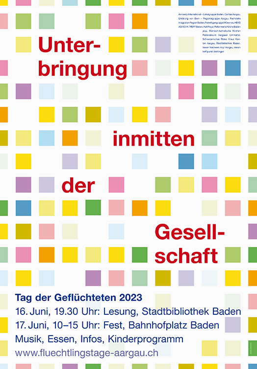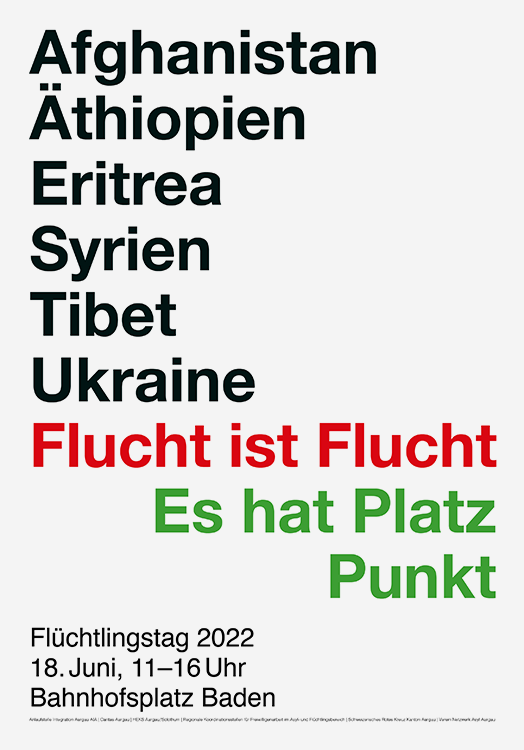– Plakat & Flyer Flüchtlingstag Aargau Auftrag: Organisationskommitee Tag der Geflüchteten Baden 2019 – Plakat F4 –